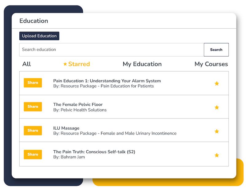 Prescribe personalized home programs, including exercise videos and educational handouts, to guide patients between appointments. Available for practitioners and patients on both web and mobile apps (Apple and Android).