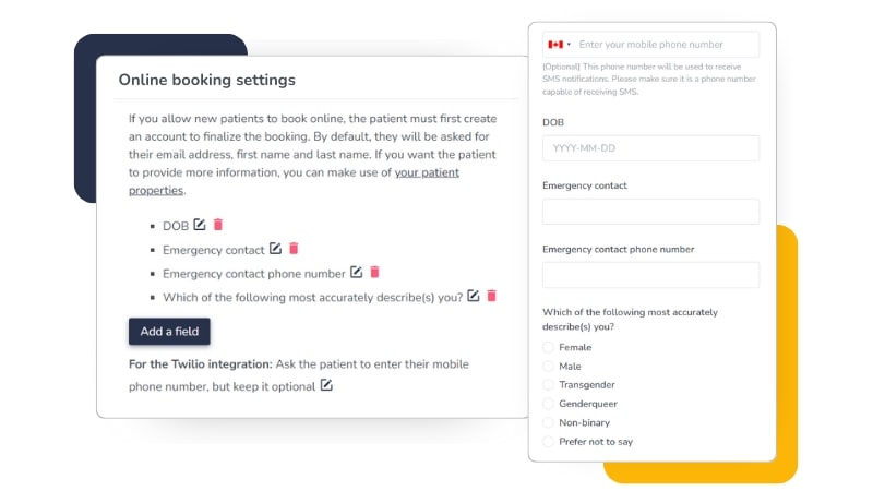 Provide patients with a seamless online booking experience. Our integrated patient scheduling software offers a convenient and hassle-free way for patients to schedule their visits, reducing administrative burden and minimizing phone interruptions. You get to decide which services are available for online booking and whether they can book themselves,need to make a request, or can add themselves to your waitlist.